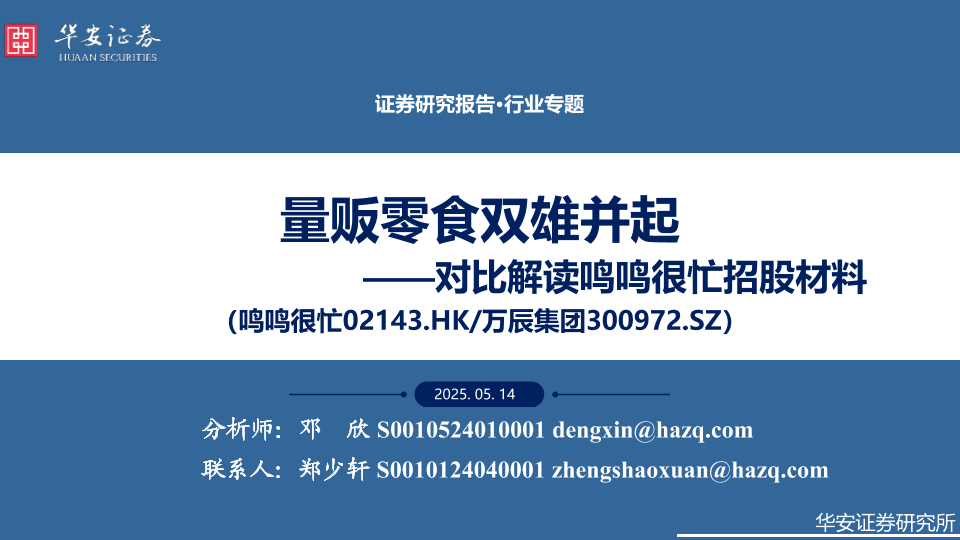 【华安证券】【20250514】食品饮料行业对比解读鸣鸣很忙招股材料:量贩零食双雄并起-19页
