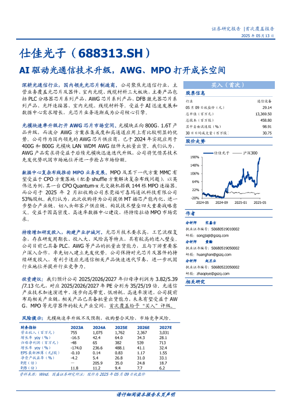 【国盛证券】【20250513】仕佳光子AI驱动光通信技术升级,AWG、MPO打开成长空间-20页