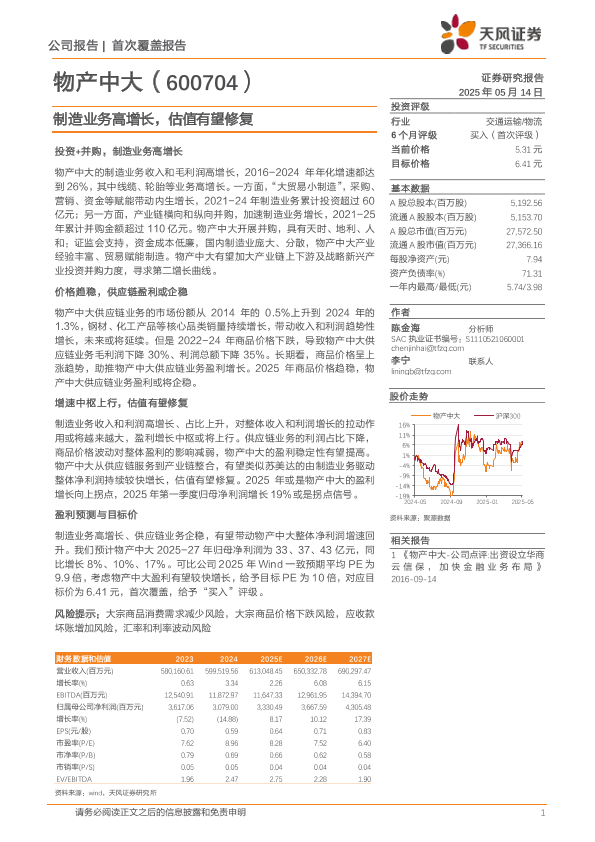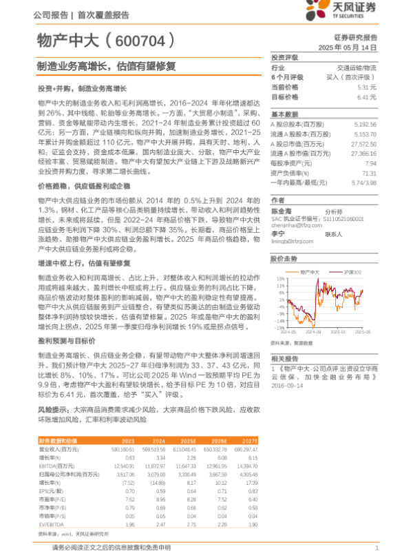 【天风证券】【20250514】物产中大制造业务高增长,估值有望修复-21页