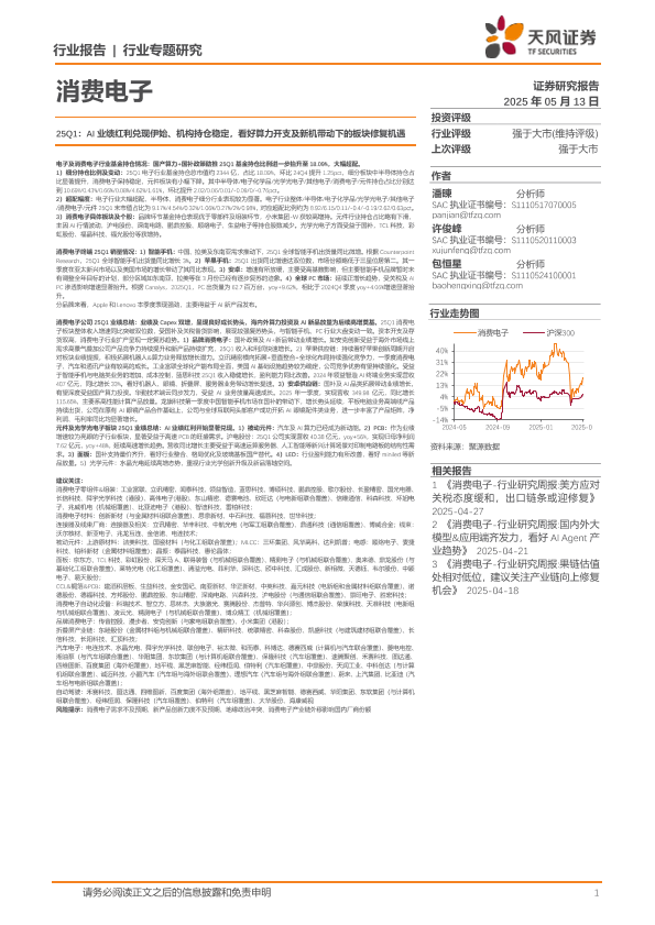 【天风证券】【20250513】消费电子行业专题研究:25Q1,AI业绩红利兑现伊始、机构持仓稳定,看好算力开支及新机带动下的板块修复机遇-19页