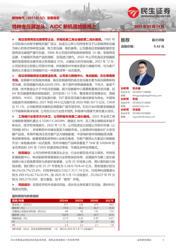 【民生证券】【20250514】新特电气(301120)深度报告:特种变压器龙头,AIDC新机遇拾级而上-23页