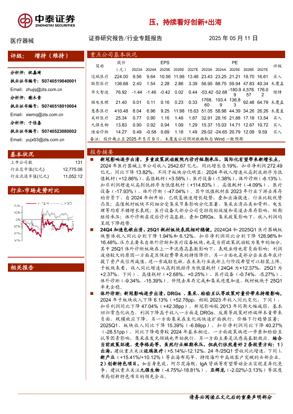 【中泰证券】【20250511】医疗器械行业板块2024&2025Q1总结-14页