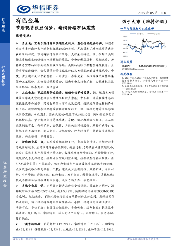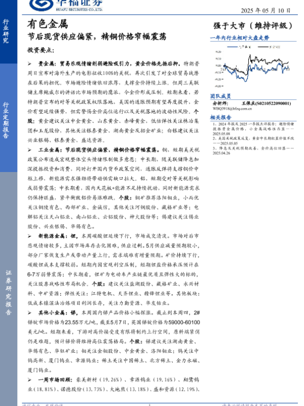 【华福证券】【20250510】节后现货供应偏紧,精铜价格窄幅震荡-16页