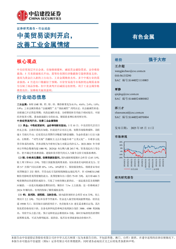 【中信建投证券】【20250511】有色金属行业:中美贸易谈判开启,改善工业金属情绪-12页