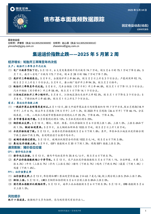 【国金证券】【20250514】债市基本面高频数据跟踪2025年5月第2周:集运运价指数止跌-12页