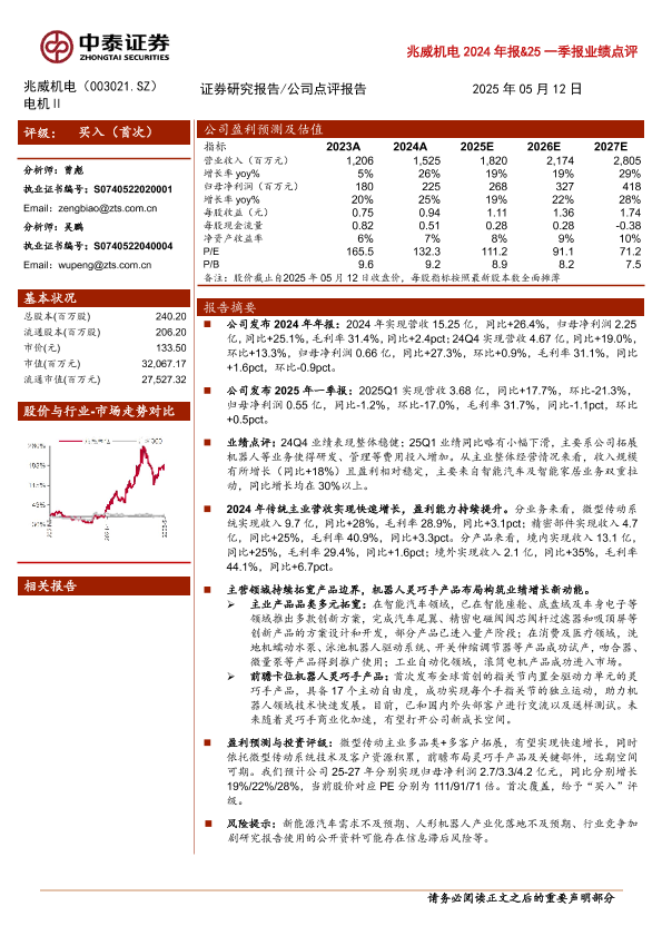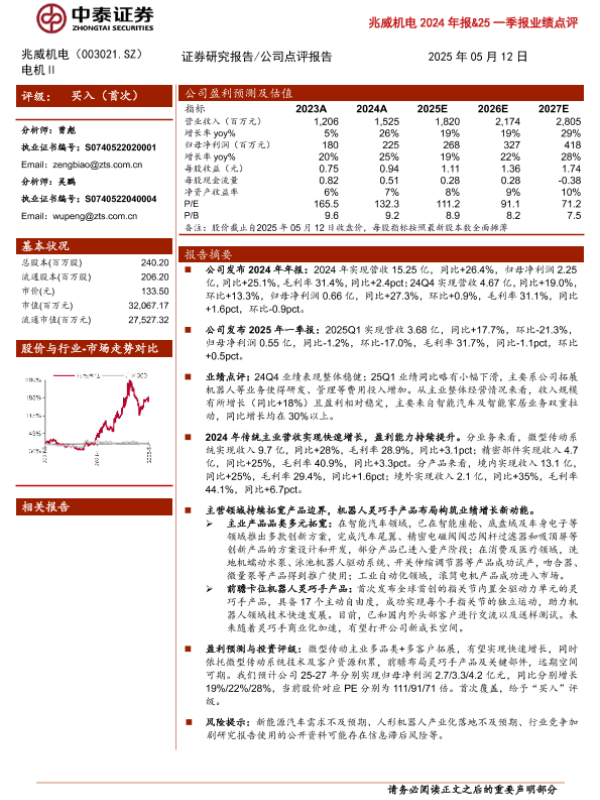 【中泰证券】【20250512】兆威机电2024年报&25一季报业绩点评-11页