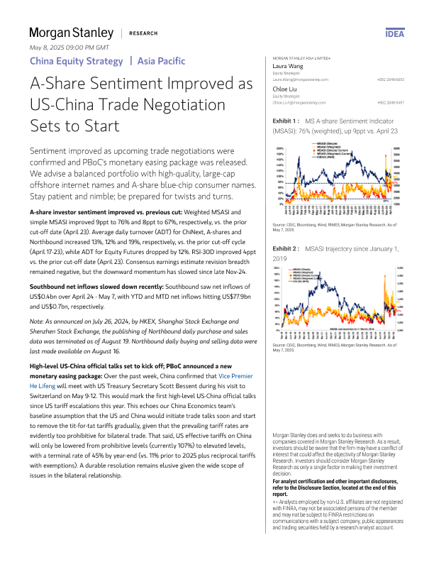 【Morgan Stanley】【20250507】A-Share Sentiment Improved as US-China Trade Negotiation Sets to Start-11页