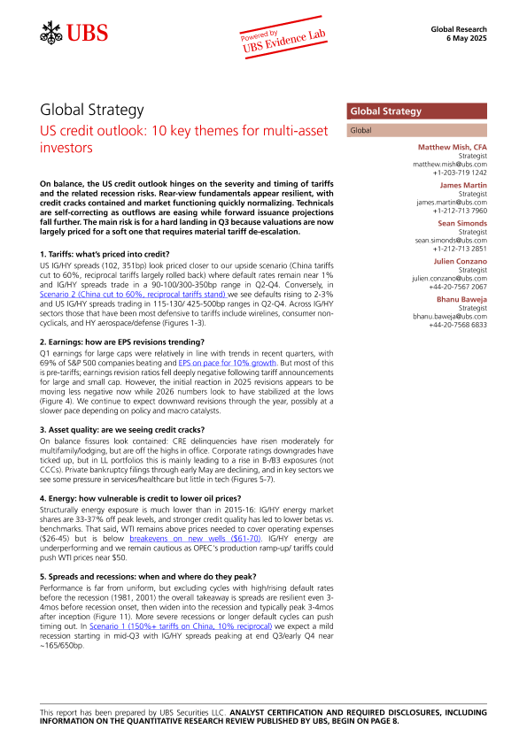 【UBS Securities LLC】【20250506】US credit outlook 10 key themes for multi-asset investors-11页