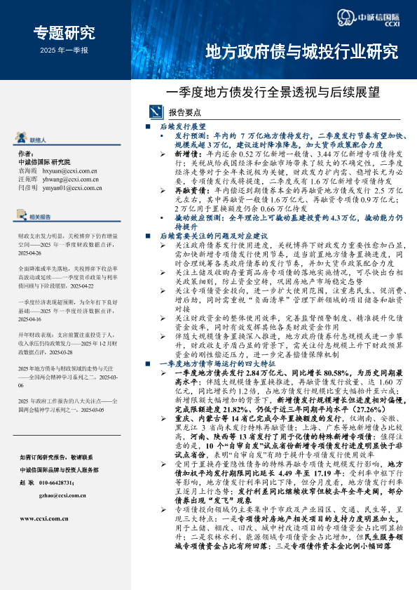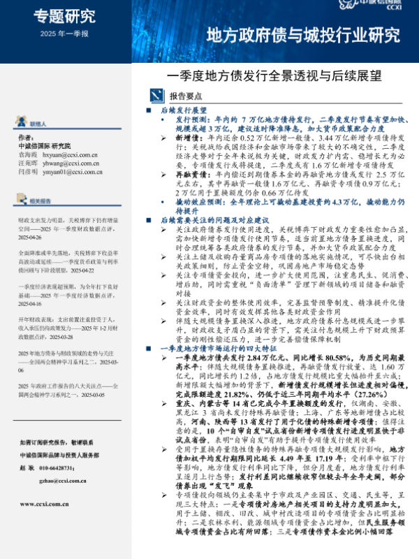 【中诚信国际】【202503】一季度地方债发行全景透视与后续展望-17页