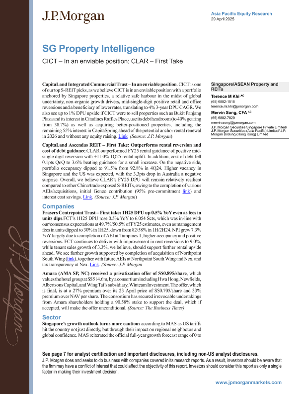 【J.P. Morgan】【20250429】Singapore Property and REITs CapitaLand Integrated Commercial Trust and CapitaLand Ascendas REIT Analysis-13页