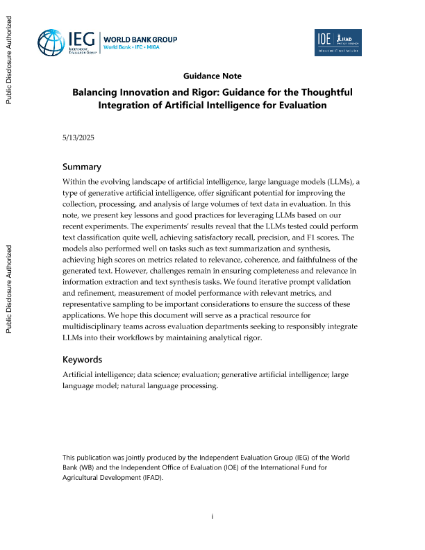 【Independent Evaluation Group (IEG) of the World Bank (WB)】【20250513】Balancing Innovation and Rigor Guidance for the Thoughtful Integration of Artificial Intelligence for Evaluation-35页