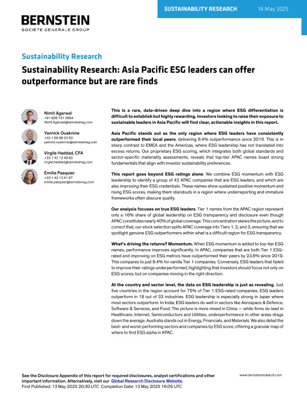 【Bernstein】【20250514】Sustainability Research Asia Pacific ESG leaders can offer outperformance but are rare finds-37页