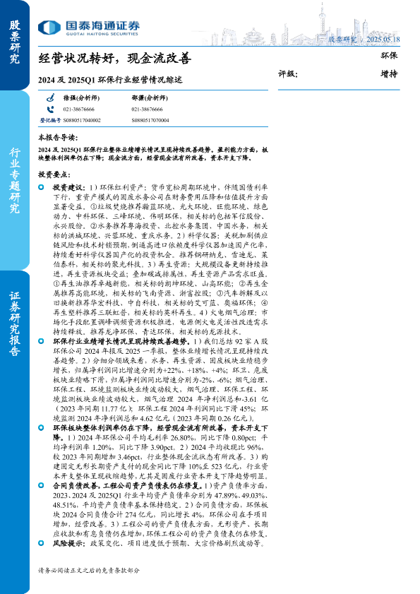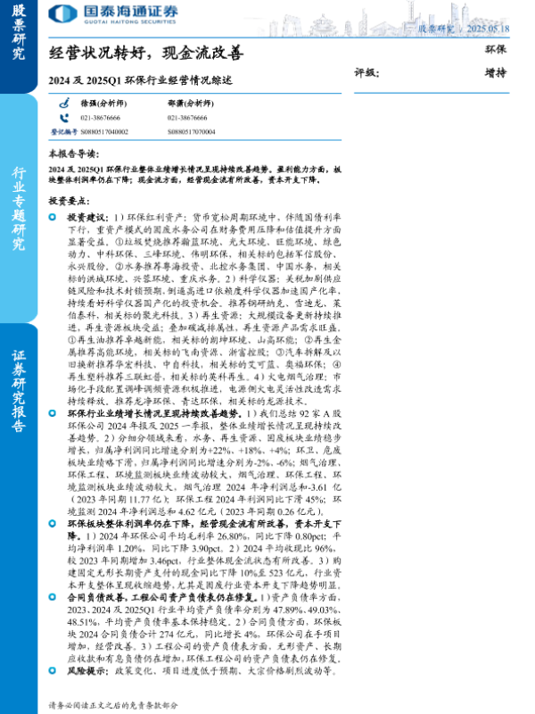 【国泰海通证券】【20250518】2024及2025Q1环保行业经营情况综述-12页