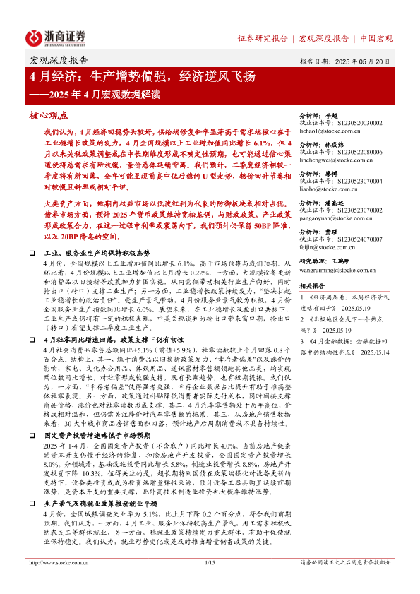 【浙商证券】【20250520】4月经济,生产增势偏强,经济逆风飞扬-15页