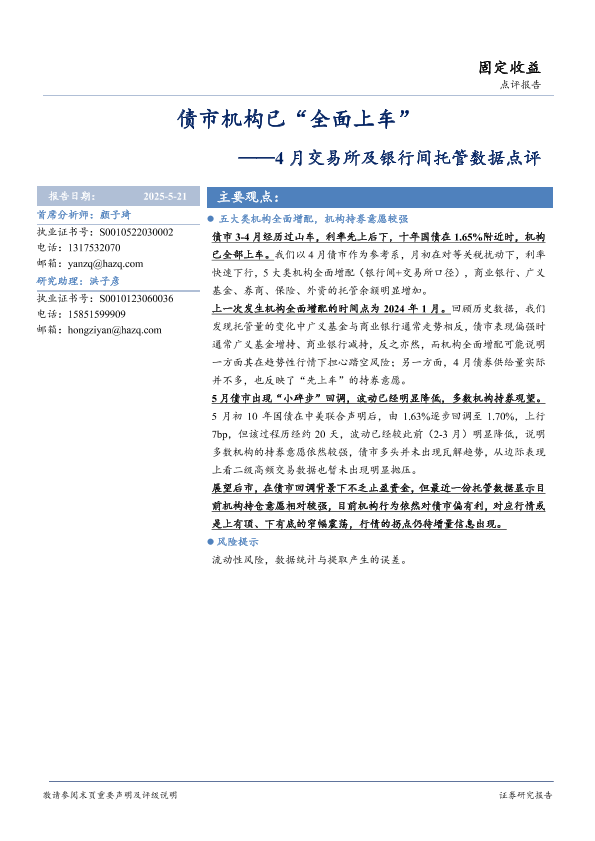 【华安证券】【20250521】4月交易所及银行间托管数据点评:债市机构已“全面上车”-15页