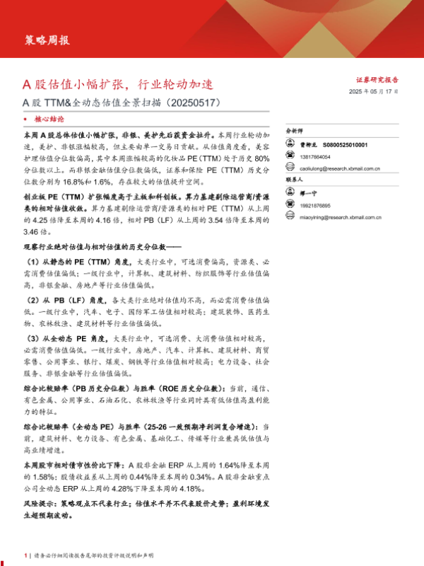 【西部证券】【20250517】A股TTM&全动态估值全景扫描-16页