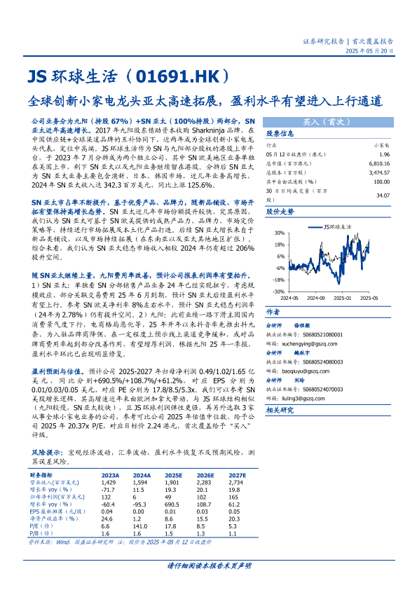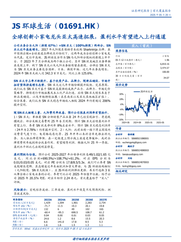 【国盛证券】【20250520】JS环球生活全球创新小家电龙头亚太高速拓展,盈利水平有望进入上行通道-16页