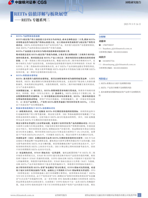 REITs REITS 估值方法 市场表现 投资价值