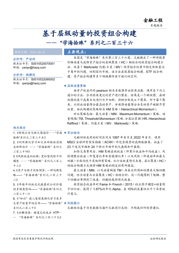 【华安证券】【20250521】基于层级动量的投资组合构建-17页