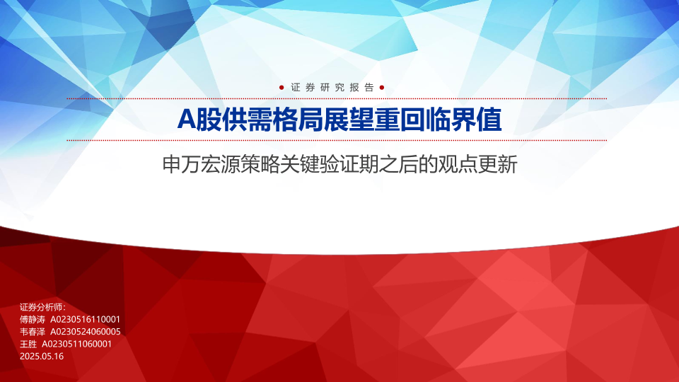 【申万宏源】【20250516】策略关键验证期之后的观点更新:A股供需格局展望重回临界值-78页