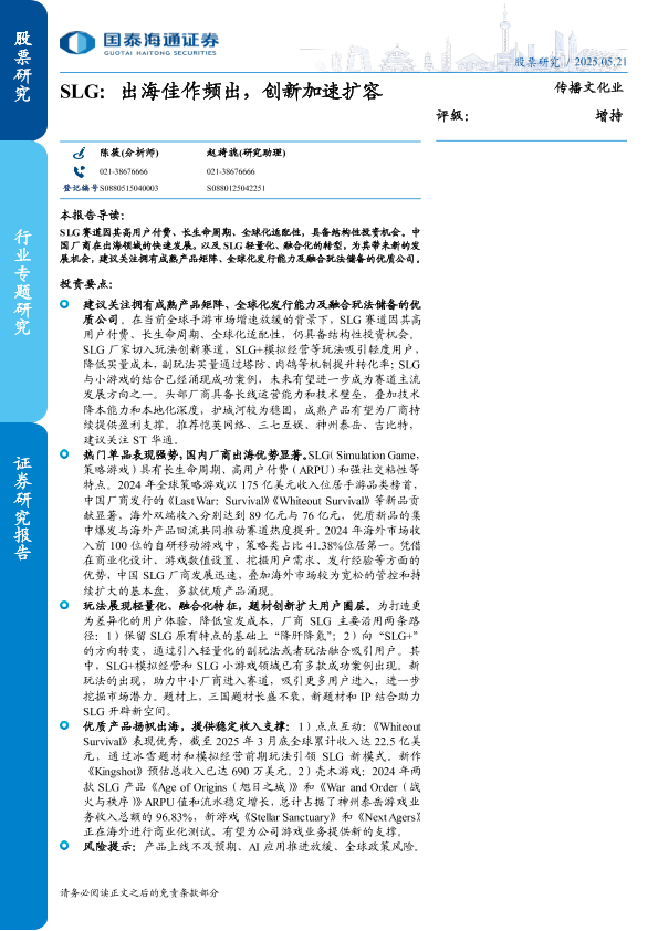 【国泰海通证券】【20250521】传播文化行业SLG:出海佳作频出,创新加速扩容-24页