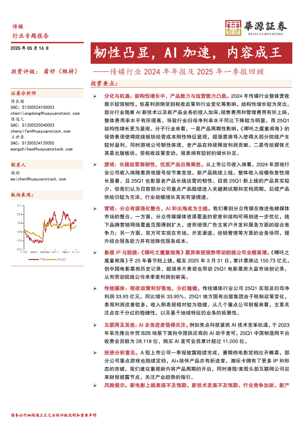 【华源证券】【20250516】传媒行业2024年年报及2025年一季报回顾:韧性凸显,AI加速,内容成王-28页