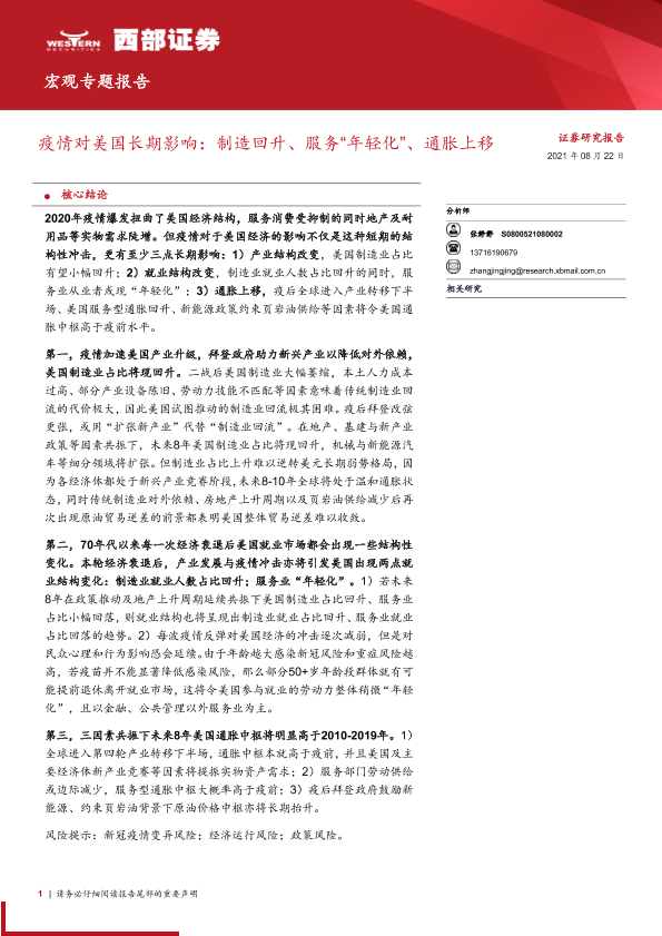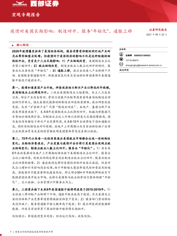 【西部证券】【20210822】疫情对美国长期影响:制造回升、服务“年轻化”、通胀上移-19页