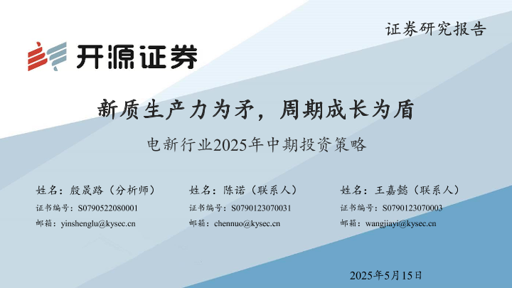 【开源证券】【20250515】电新行业2025年中期投资策略:新质生产力为矛,周期成长为盾-126页