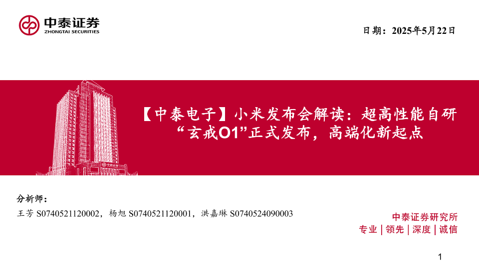【中泰证券】【20250522】电子行业小米发布会解读:超高性能自研“玄戒O1”正式发布,高端化新起点-31页