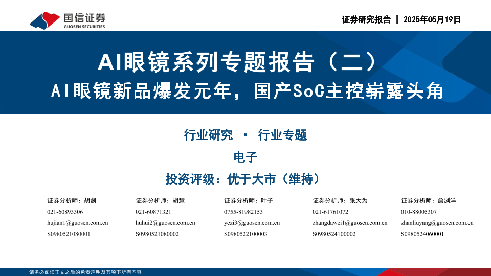 【国信证券】【20250519】AI眼镜系列专题报告(二) AI眼镜新品爆发元年,国产SoC主控崭露头角-43页