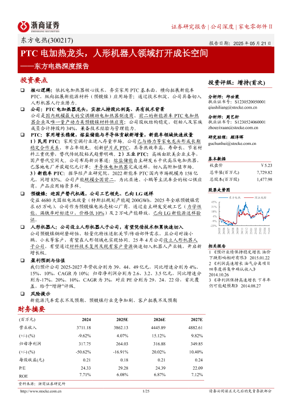 【浙商证券】【20250521】东方电热深度报告:PTC电加热龙头,人形机器人领域打开成长空间-25页