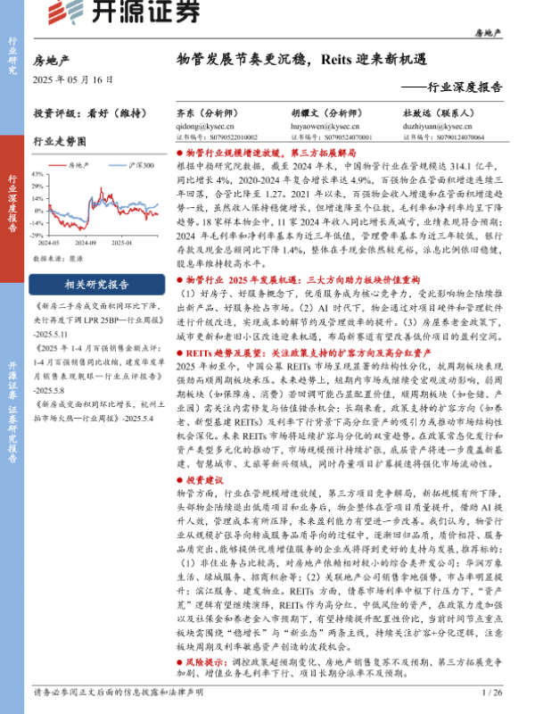 【开源证券】【20250516】房地产行业深度报告:物管发展节奏更沉稳,Reits迎来新机遇-26页