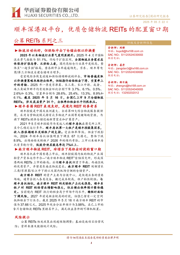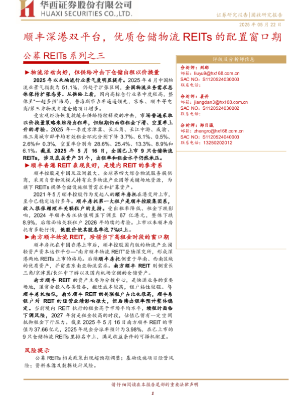 【华西证券】【20250522】公募REITs系列之三:顺丰深港双平台,优质仓储物流REITs的配置窗口期-27页