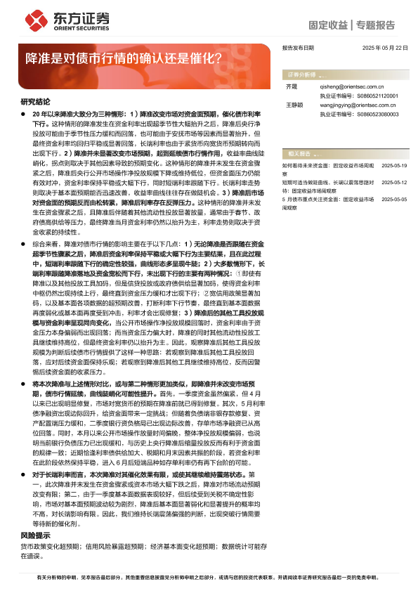 【东方证券】【20250522】降准是对债市行情的确认还是催化?-13页