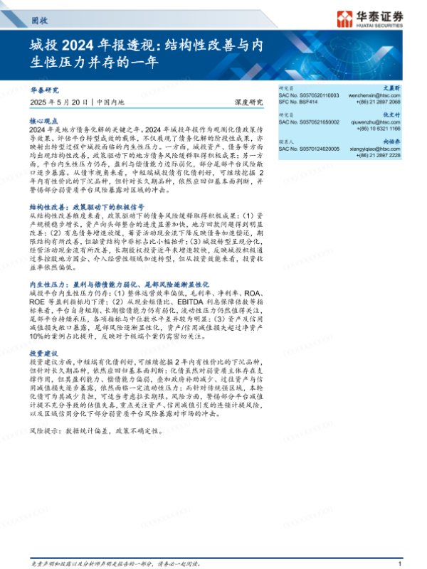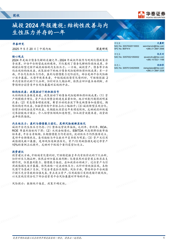 【华泰证券】【20250520】固收深度研究-城投2024年报透视:结构性改善与内生性压力并存的一年-16页