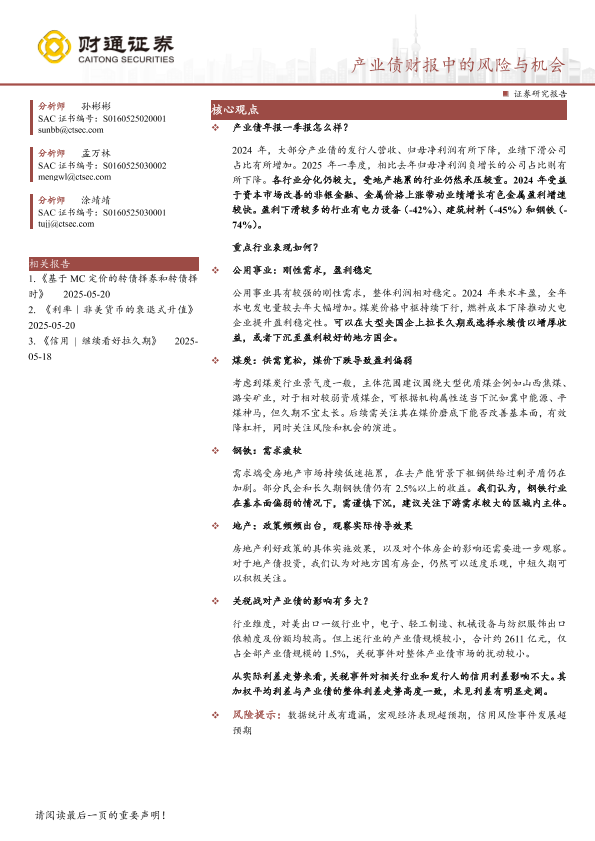 【财通证券】【20250521】产业债财报中的风险与机会-24页