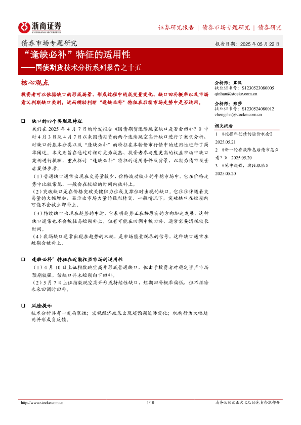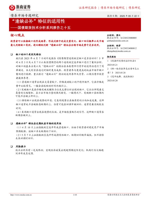 债券市场 国债期货 技术分析 逢缺必补 金融
