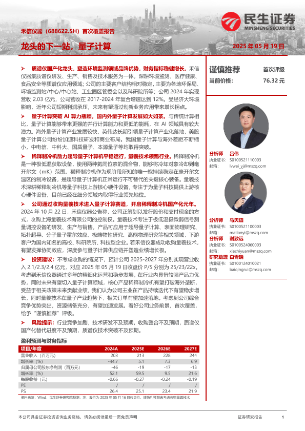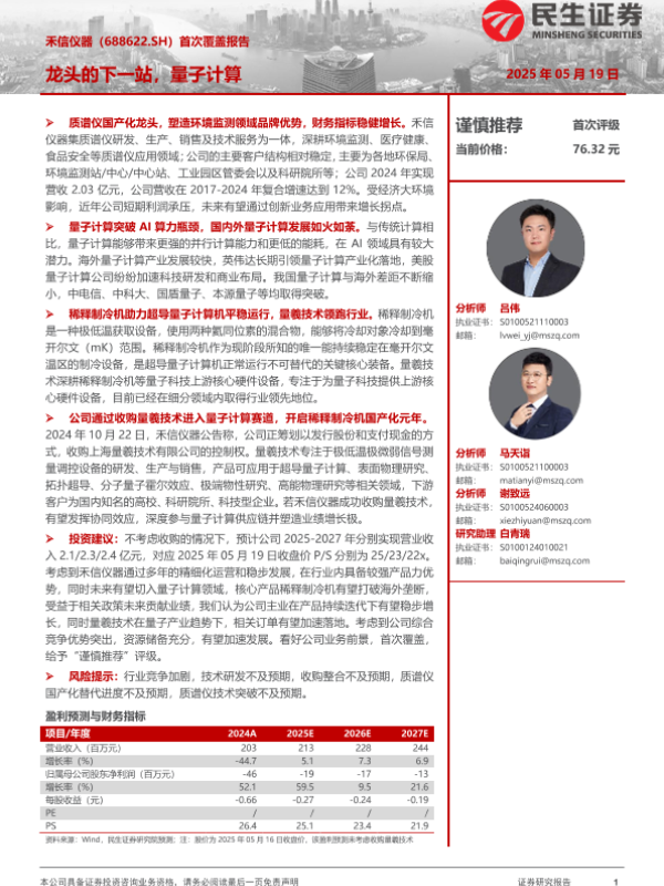 【民生证券】【20250519】禾信仪器首次覆盖报告:龙头的下一站,量子计算-33页