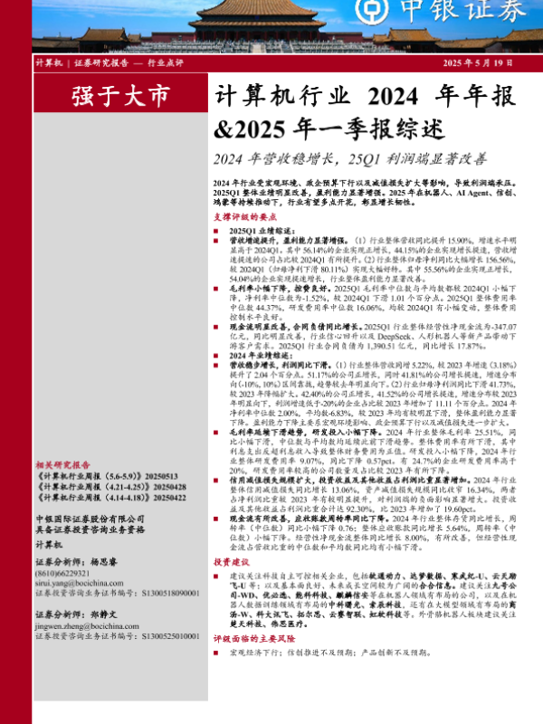 【中银证券】【20250519】计算机行业2024年年报&2025年一季报综述-18页