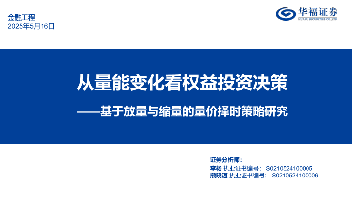 【华福证券】【20250516】基于放量与缩量的量价择时策略研究:从量能变化看权益投资决策-36页