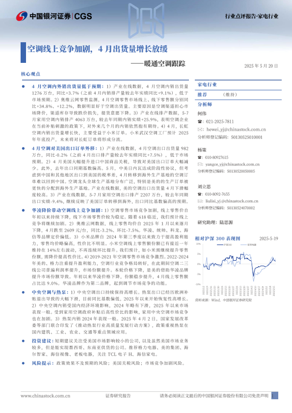 【银河证券】【20250520】家电行业暖通空调跟踪:空调线上竞争加剧,4月出货量增长放缓-16页