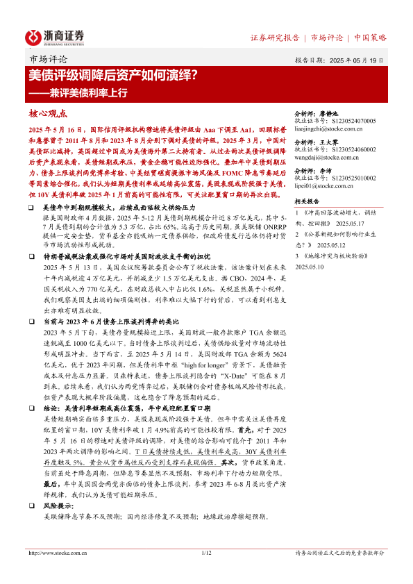 【浙商证券】【20250519】兼评美债利率上行:美债评级调降后资产如何演绎?-12页