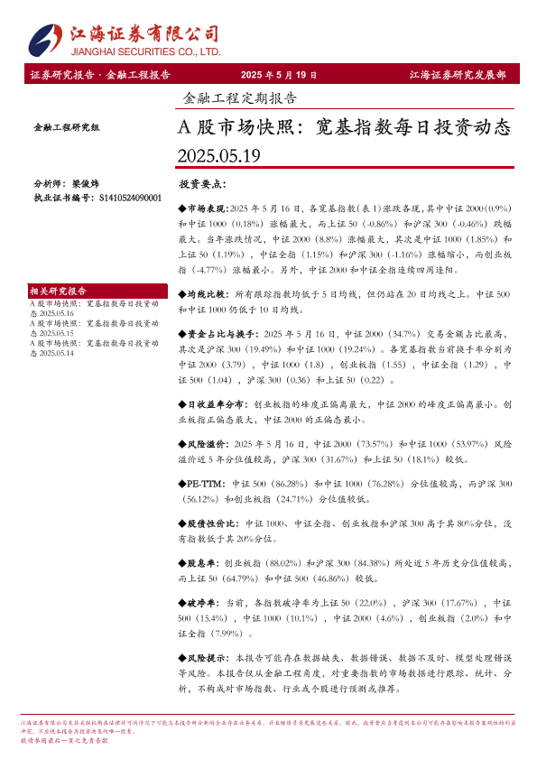 【江海证券】【20250519】金融工程定期报告:A股市场快照,宽基指数每日投资动态-13页