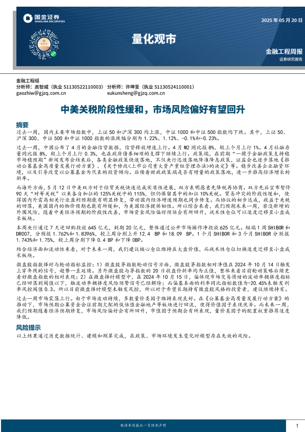 【国金证券】【20200525】量化观市:中美关税阶段性缓和,市场风险偏好有望回升-12页