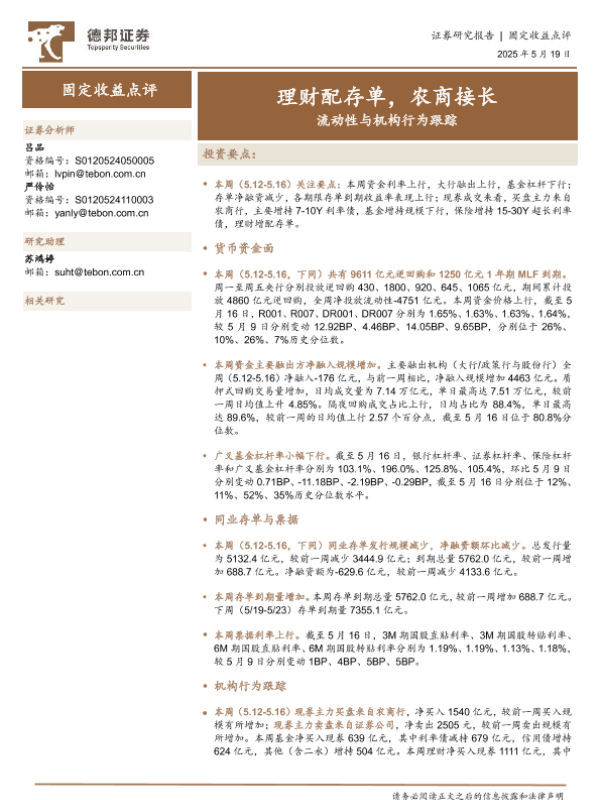 【德邦证券】【20250519】流动性与机构行为跟踪:理财配存单,农商接长-19页