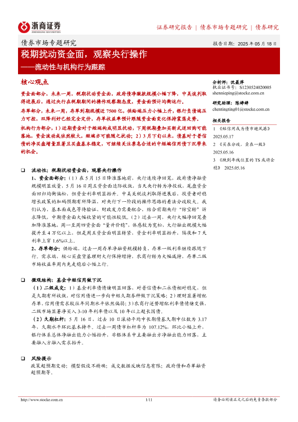 【浙商证券】【20250518】流动性与机构行为跟踪:税期扰动资金面,观察央行操作-11页