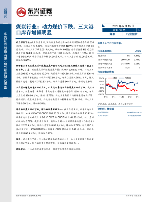 【东兴证券】【20250515】煤炭行业:动力煤价下跌,三大港口库存增幅明显-10页