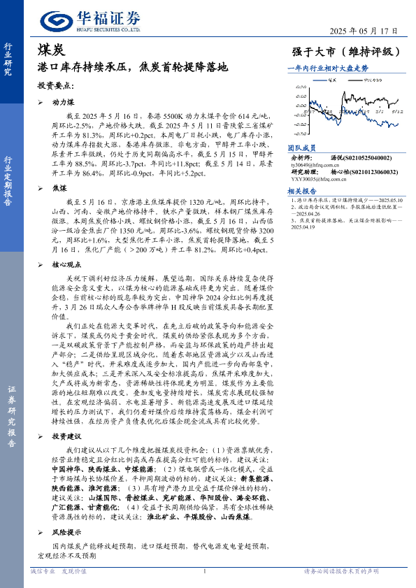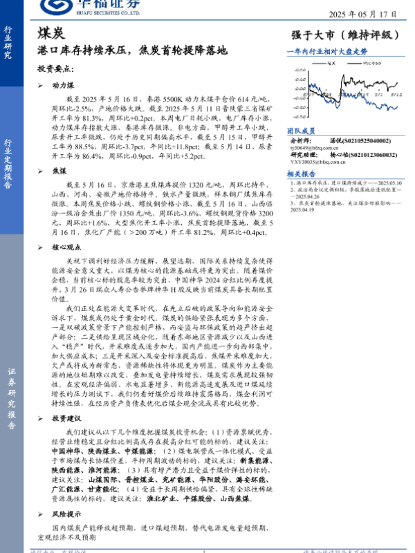 【华福证券】【20250517】煤炭行业定期报告:港口库存持续承压,焦炭首轮提降落地-22页