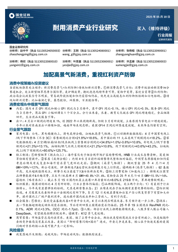 【国金证券】【20250518】耐用消费产业行业研究:加配高景气新消费,重视红利资产防御-14页