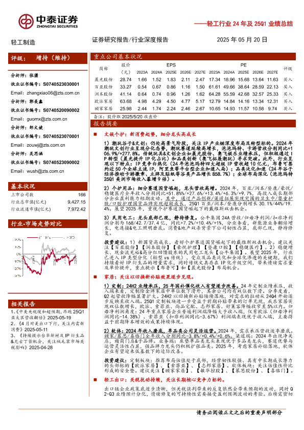 【中泰证券】【20250520】轻工行业24年及25Q1业绩总结-33页